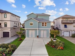 Stunning 2021-built (per owner) canal-front home on coveted Tiki Island offering direct Jones Bay access and breathtaking sunset views. This impeccably maintained 4-bedroom, 3.5-bath two-story residence features a thoughtfully designed open floor plan with a spacious kitchen island, propane gas range, and stainless steel appliances. The elegant interior showcases an open concept with modern glass fixtures and a striking open-cord stairwell design. The primary suite is conveniently located on the main level, with three bedrooms upstairs. Expansive main level balcony and a ground-level outdoor living area adjacent to the boat dock and slip for seamless waterfront living. The oversized enclosed three-door garage provides exceptional bonus storage or flex entertainment space opening directly onto the boat slip and canal. Whether you're a boating enthusiast or sunset chaser, this waterfront gem delivers luxuirous living in one of Galveston coveted communities. NO HOA fee.